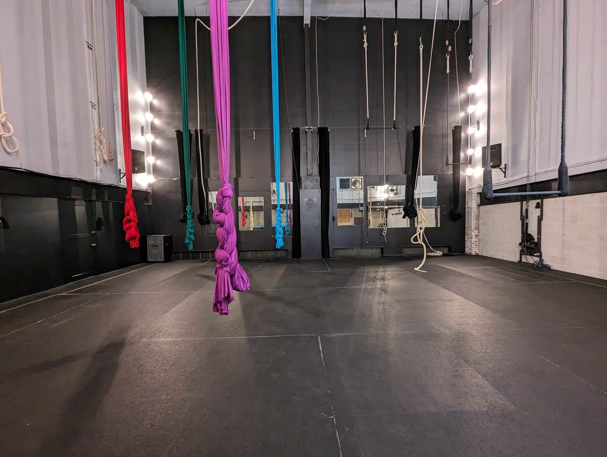 Sometimes performers will be rehearsing during open studio or during time they have rented and may be wearing specialty costuming for their performance. In an effort to keep our space welcoming and comfortable for all, during general training we do require shirts and bottoms (or leotards/unitards) be worn.