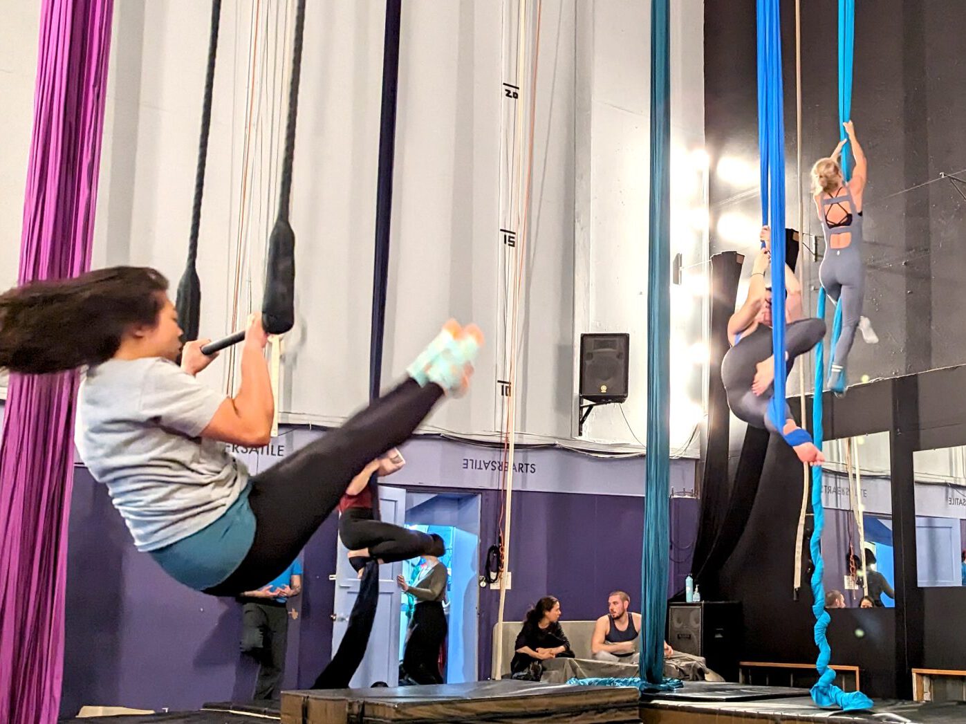 Open Studio is ideal for practicing skills you’ve already learned, rehearsing acts, and training alongside aerial friends. This is not for learning brand new skills or practicing skills you’re uncertain about. These activities should be done with a coach present in class or during private lessons.